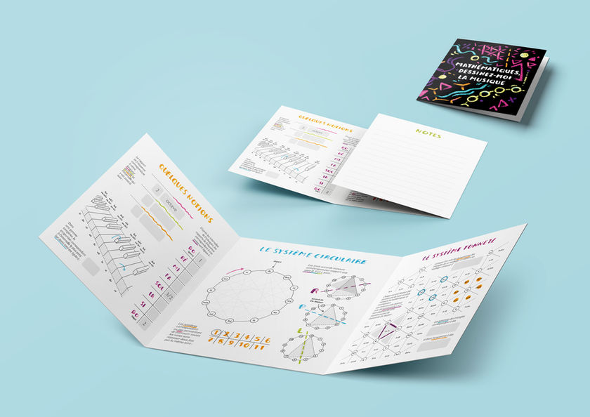L’enjeu principal du projet est de créer un registre visuel permettant la rencontre des deux disciplines étudiées, et de faire comprendre de manière plus intuitive et efficace des principes mathématiques ou musicaux complexes et / ou abstraits. Ainsi, l’atelier est composé d’une série d’animations plus ou moins courtes et d’un dépliant à remplir servant de guide aux participants et leur permettant de participer plus activement à l’atelier. Les visuels, à la fois expressifs et élégants, permettent de rendre le contenu abordé plus accessible.
